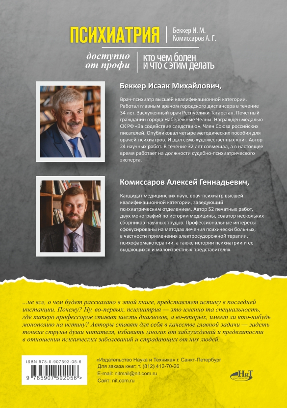 Авторы, всю жизнь проработавшие практическими врачами-психиатрами, говорят об этих трудных вопросах и проблемах простым человеческим языком, но с профессиональной точки зрения.